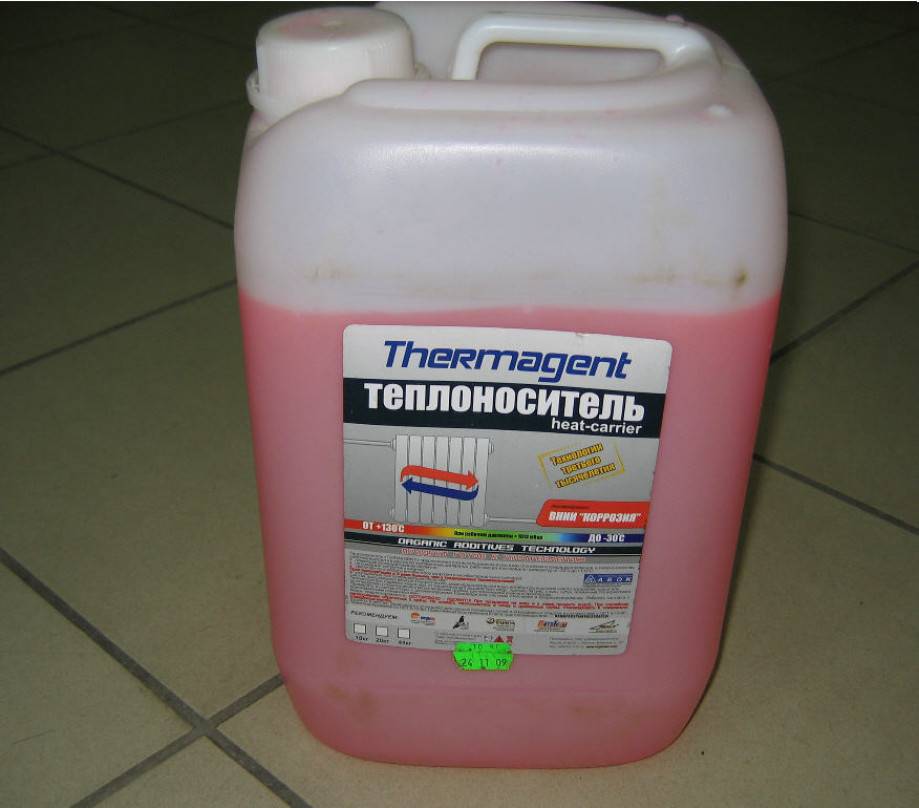 Применяют как в промышленных системах, так и для отопления небольших частных домов. Особенность — температура замерзания – 65 градусов. При использовании в регионе с мягкой зимой вещество можно разбавить водой, что снизит его стоимость. Имеет щадящие свойства к материалам системы отопления и крайне низкую воспламеняемость.