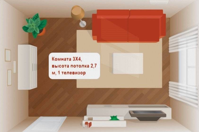 Возьмем комнату: площадь 20 кв. м, высота потолков 3 м, проживает 1 человек, есть компьютер, телевизор и холодильник. Комната солнечная, оргтехника работает поочередно.