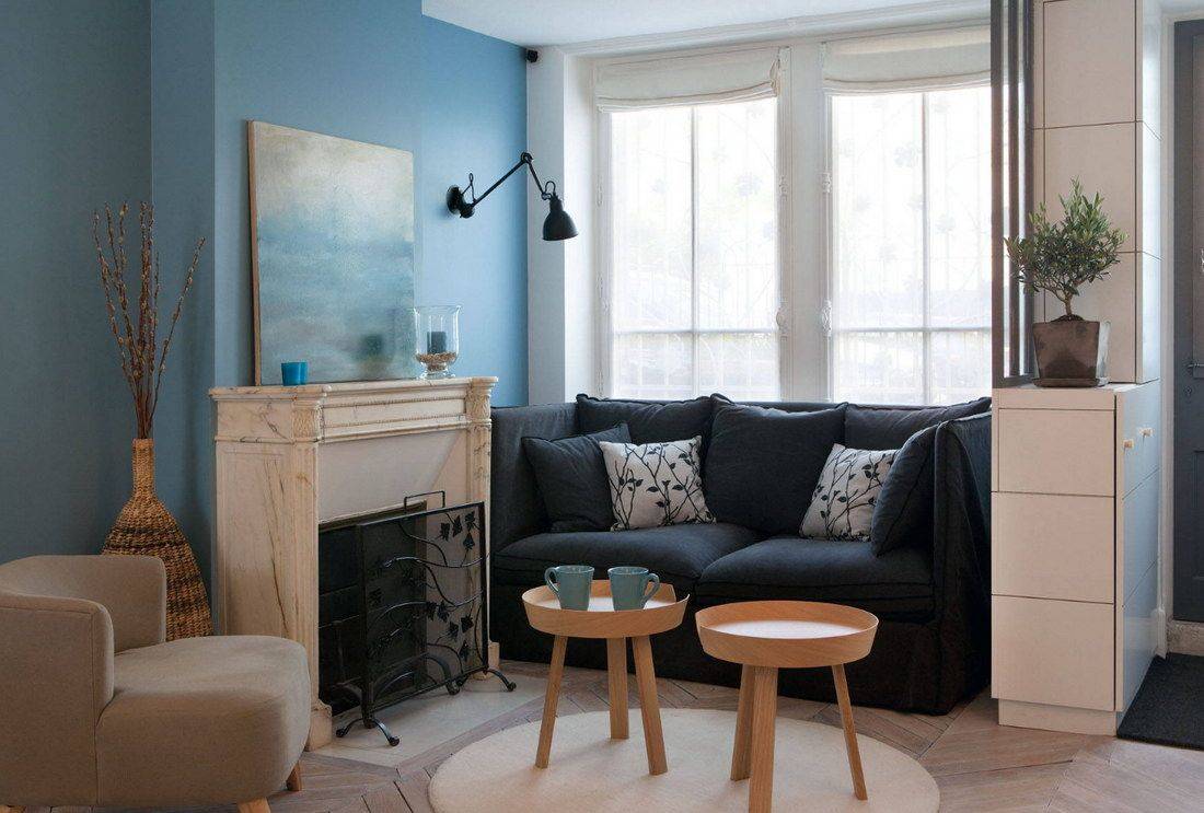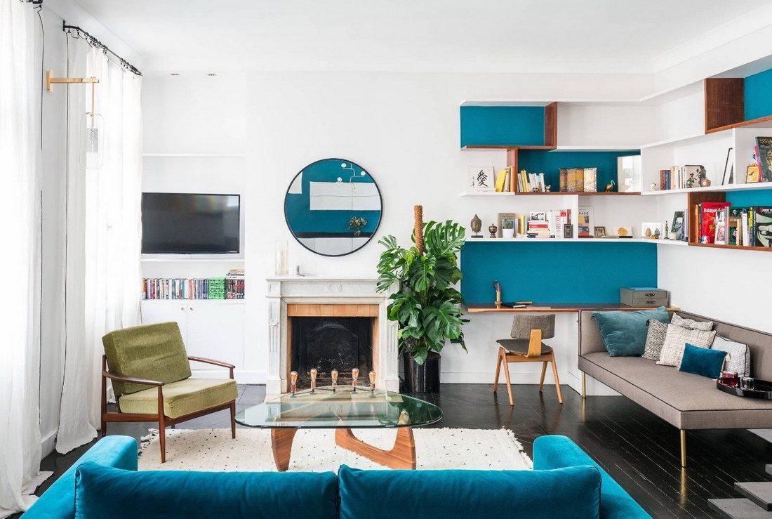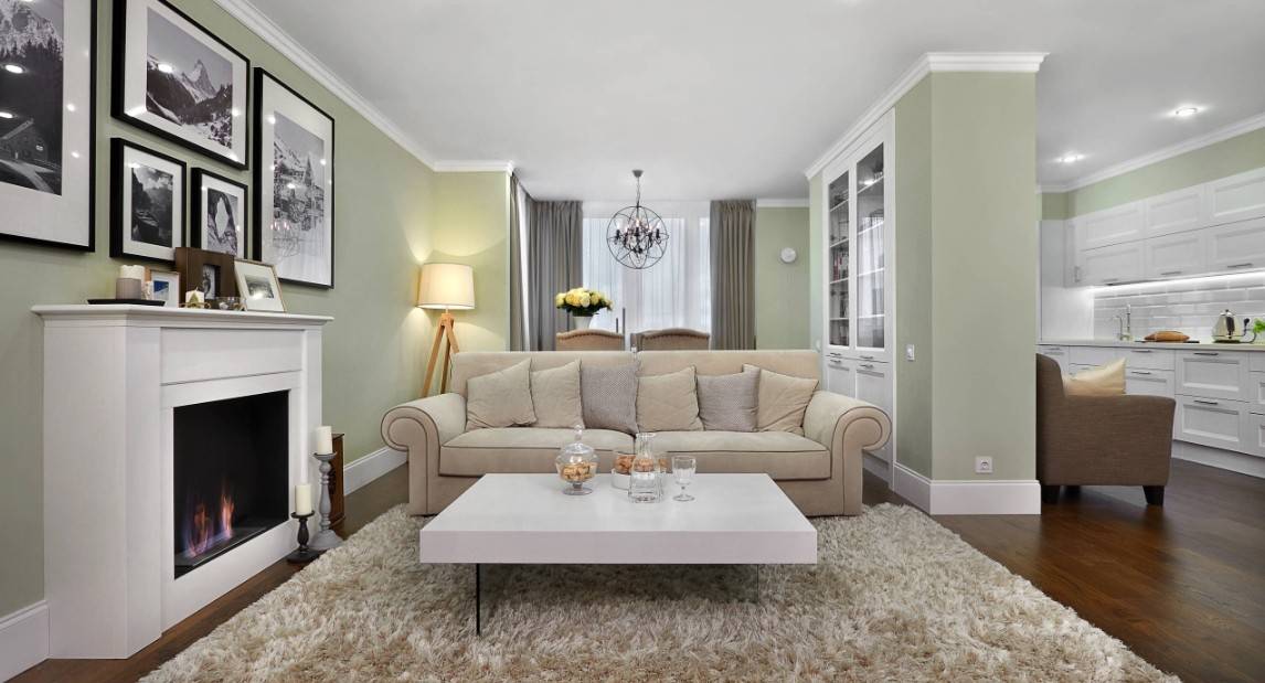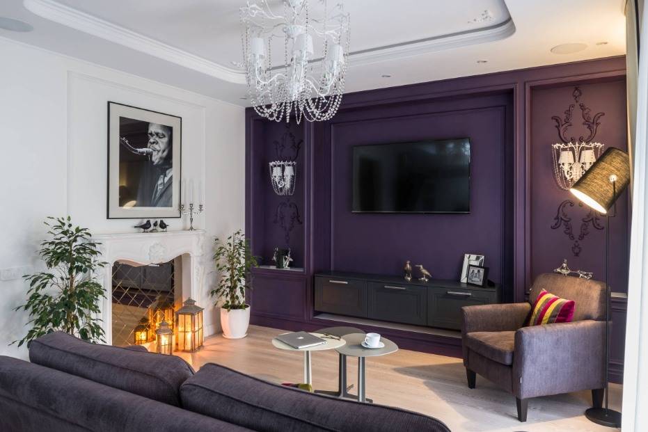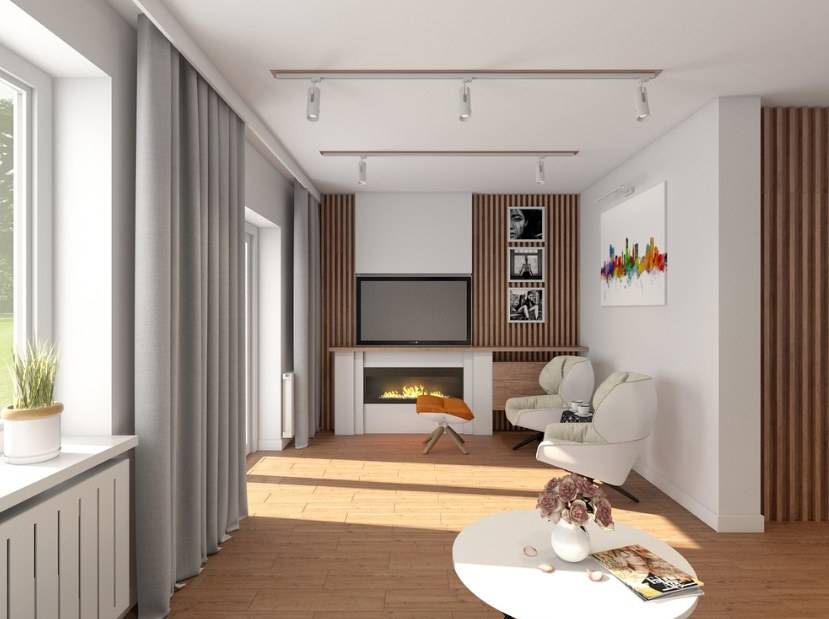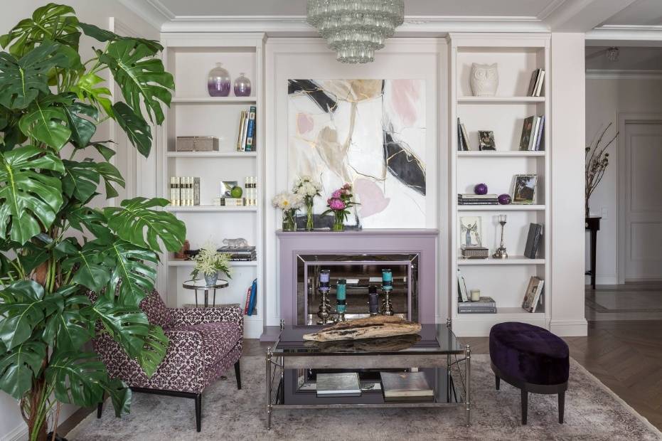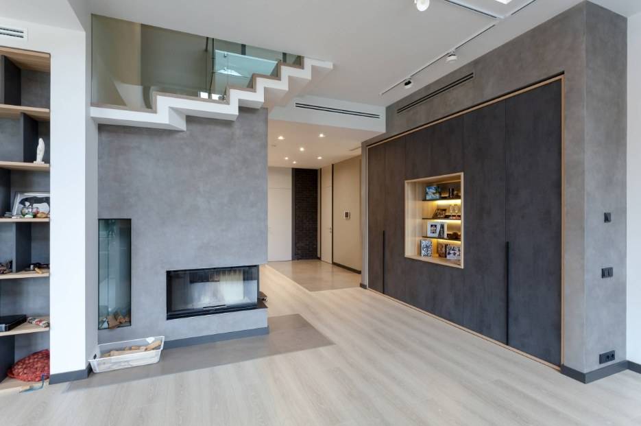 Интерьер гостиной с камином в квартире