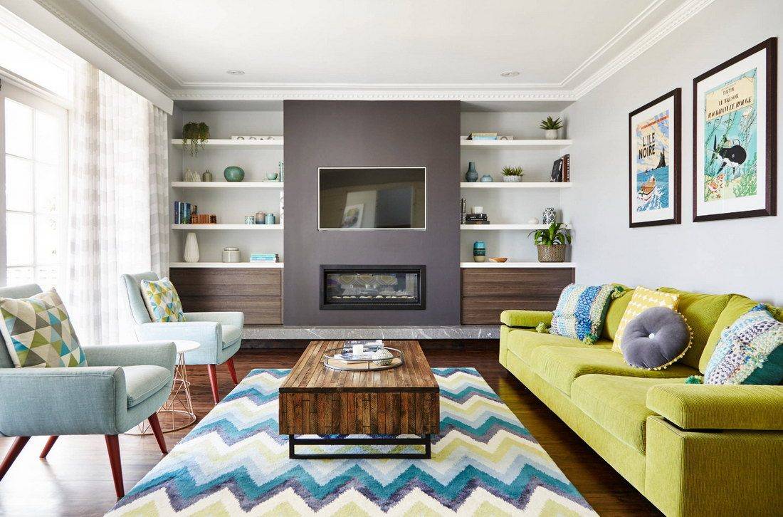 По мнению дизайнеров, в интерьере гостиной простой квартиры будет уместным и электрический камин. Лучше отдавать предпочтение самым компактным и встроенным моделям. Они идеально дополнят дизайн и в целом не займут много места. Кроме того, надо позаботиться и о правильной расстановке мебели. Ведь для камина надо освободить максимум свободного пространства.