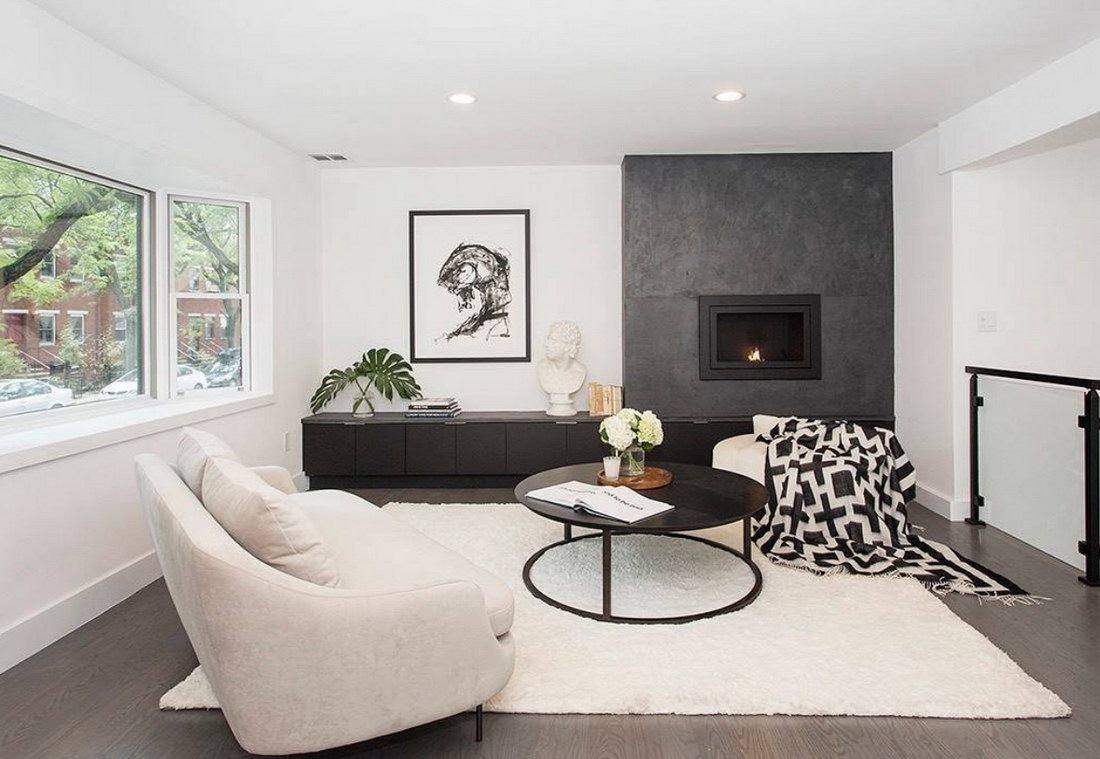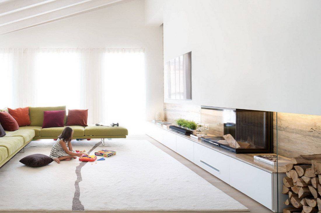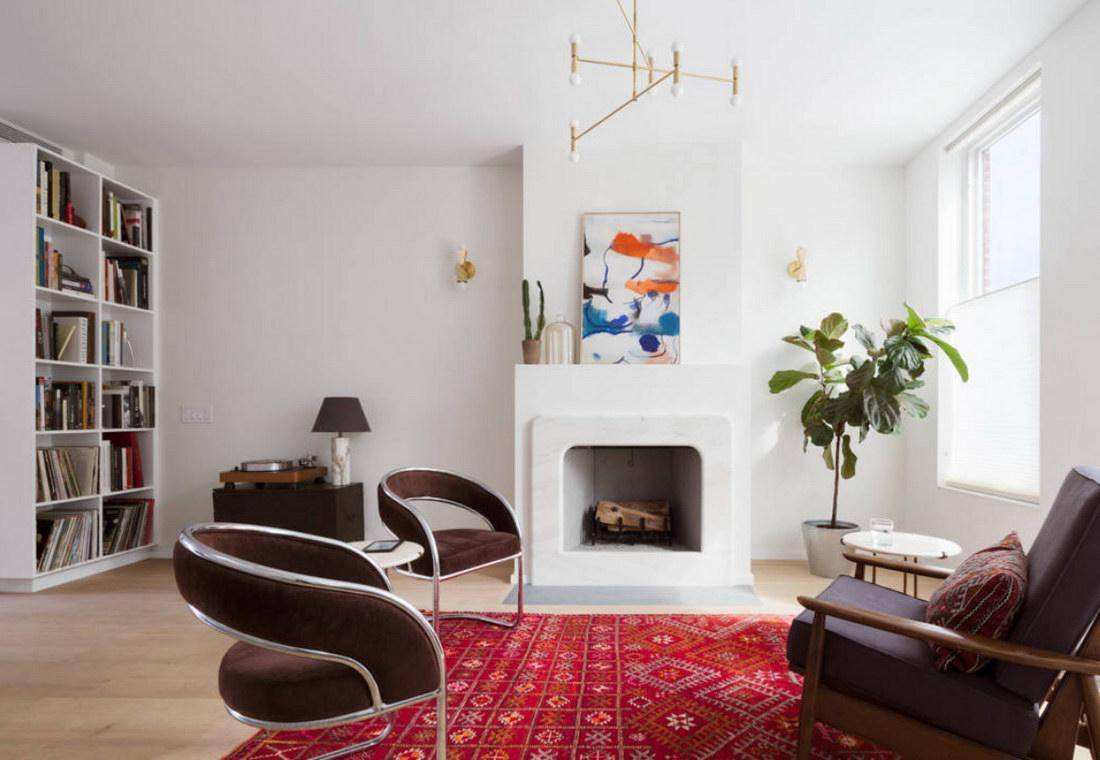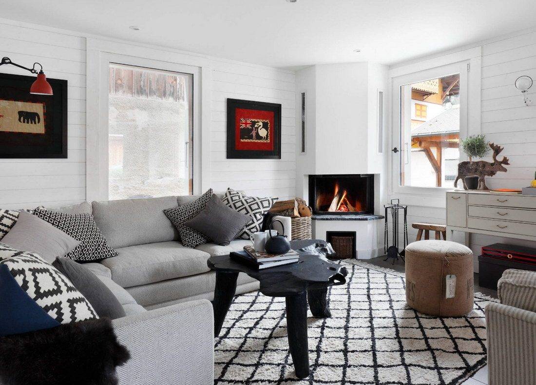 Остановили выбор на настоящем камине? Его придется регулярно чистить — процесс трудоемкий и достаточно “пыльный”. Откажитесь от пачкающегося декора и предметов мебели — например, белых меховых ковров.