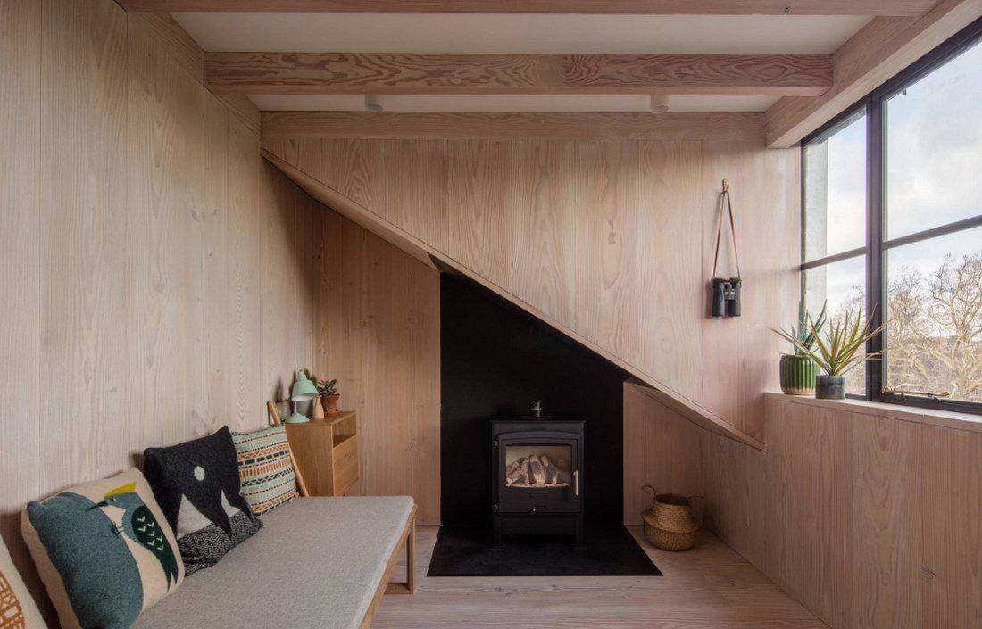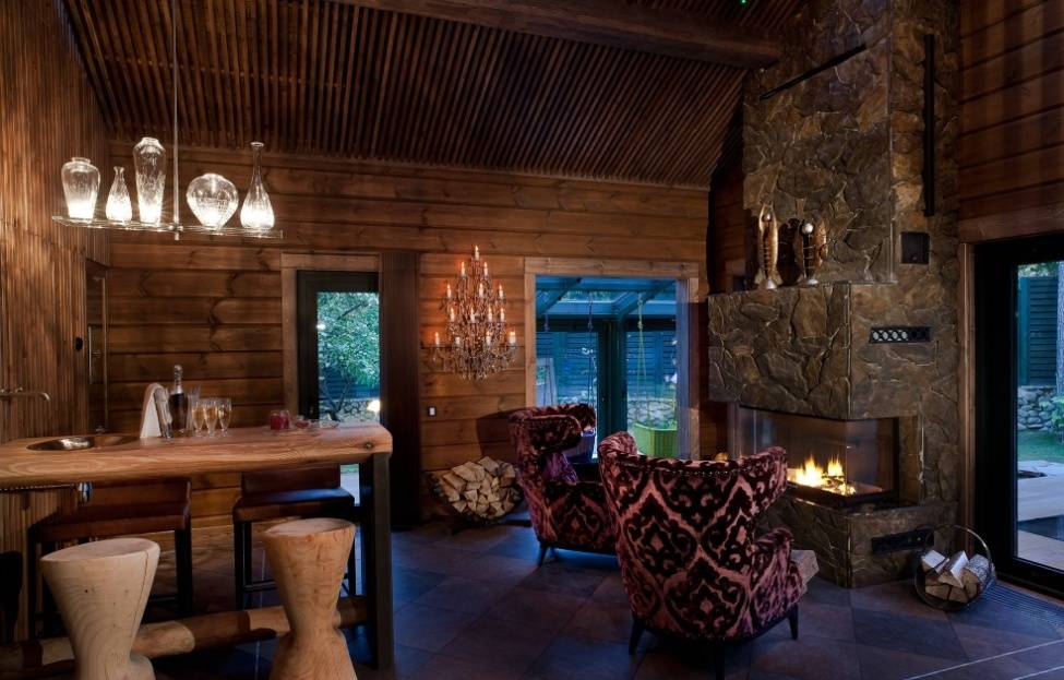 Настоящий очаг сделает интерьер деревянного дома особенно уютным