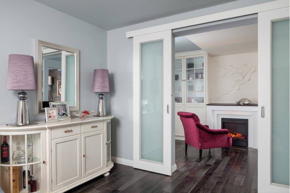 Встроенный. Находится в стене, иногда может быть даже двухсторонним на две смежные комнаты. Место под него желательно предусмотреть ещё во время строительных работ;