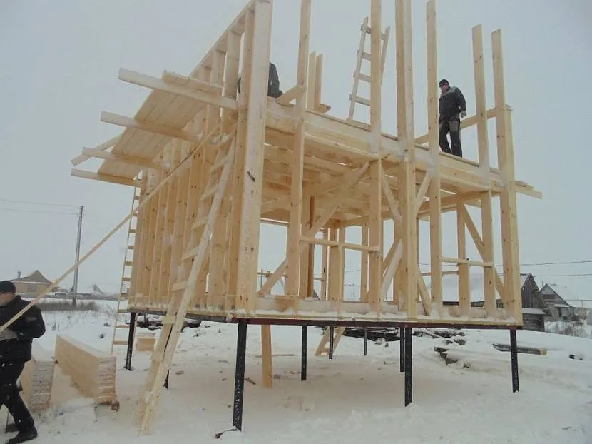 Один из плюсов каркасного дома – строительные работы можно проводить и в зимнее время годаИсточник assz.ru