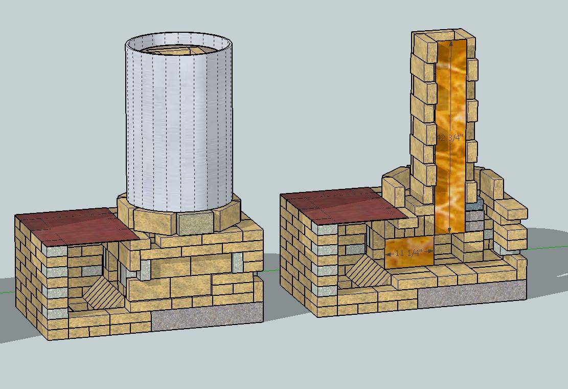 Колпаковая печь по своему принципу очень похожа на работу ракетных печей, где горячие газы движутся не под воздействием тяги дымовой трубы, а благодаря силе тяжести самих газов.
