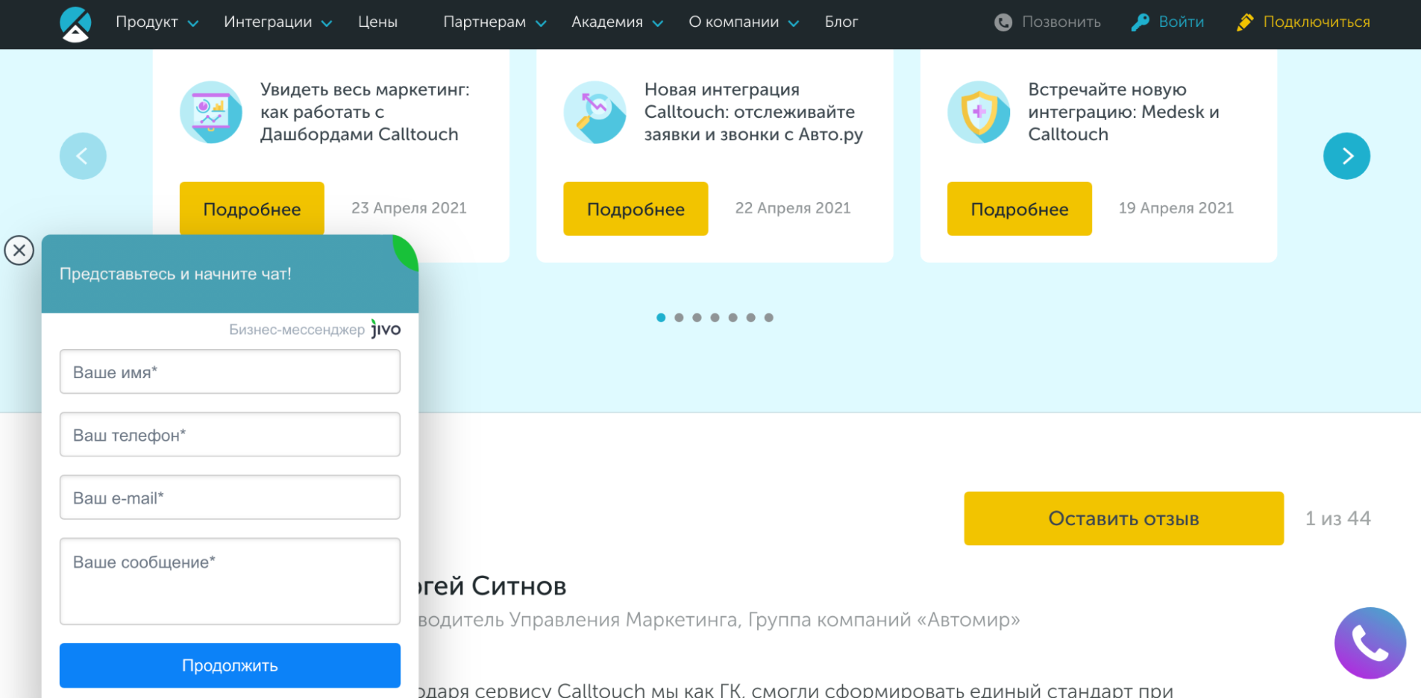 Но не можем не отметить, что почти все виджеты присутствуют в инструментарии крупных сервисов сквозной аналитики и/или коллтрекинга: