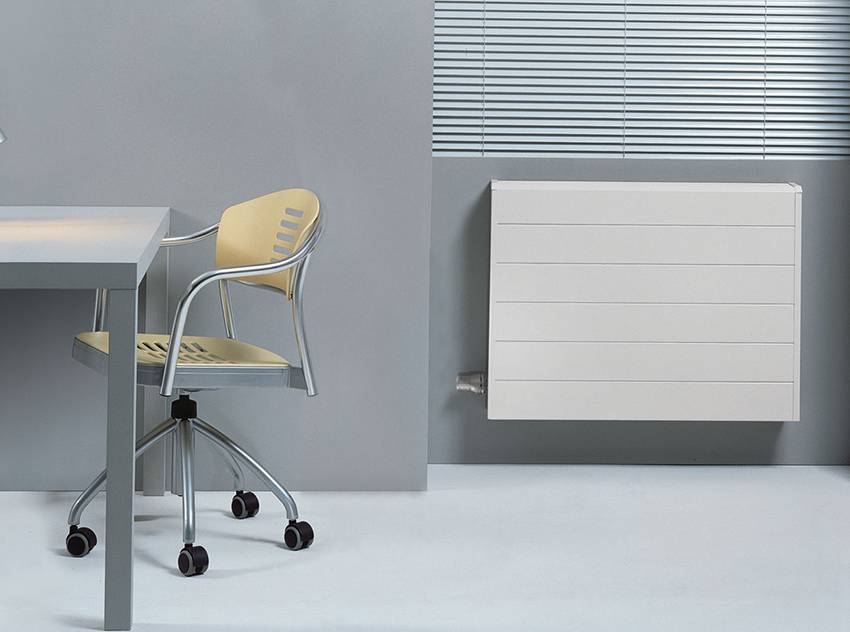 Представлены биметаллическими или стальными конструкциями. В качестве источника энергии применяется жидкие теплоносители. Это может быть вода, масло или антифриз. Монтаж планируется на этапе проектирования объекта. Плюсы – стенки техники не так сильно нагреваются. Обогрев обеспечивается за счет хорошей конвекции, а не от горячего агрегата. Минус – сложность установки системы.