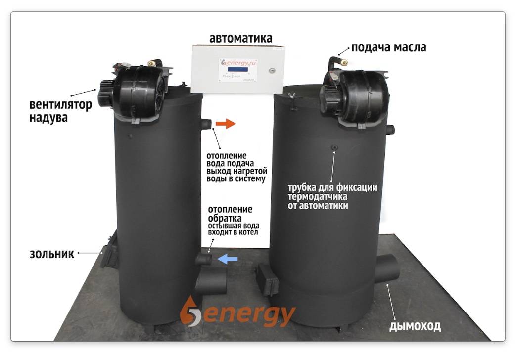 Индустриальные модели масляных котлов часто оснащаются блоками автоматического управления.