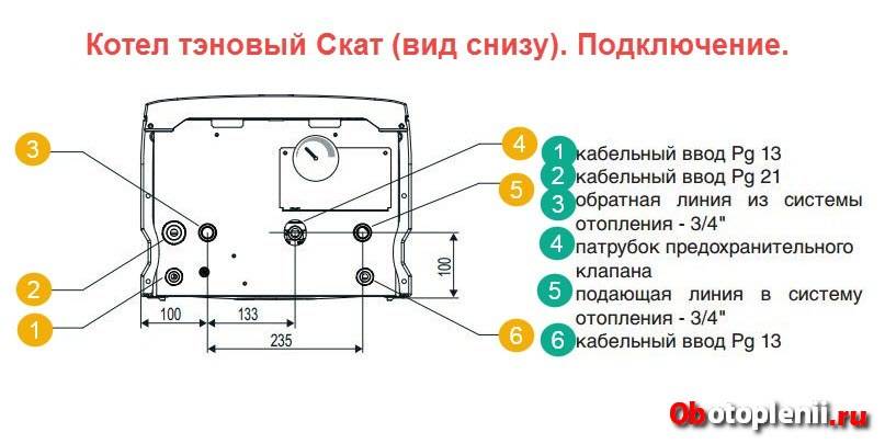 Посмотрим на конструкцию ТЭН котла на примере котла Proterm «Скат», мощности 6, 9, 12,14,18, 21, 24,28 КВт. Это модель настенного электрического котла с эквитермическим регулированием.