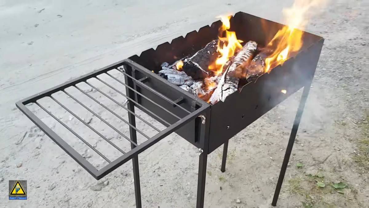 - Переносной вариант. Основные отличия таких мангалов – компактность и малый вес, что дает возможность переносить руками одному человеку, легко перевозить в багажнике автомобиля. Наиболее характерные разновидности – облегченные, миниатюрные и разборные, а также складные конструкции.