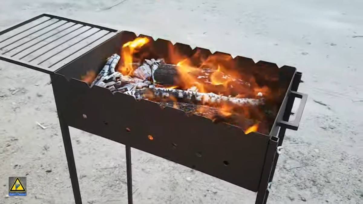 - Конструкция будет полностью пожаробезопасной. Используемые материалы устойчивы к высоким температурам; если при работе использовались правильные чертежи с указанием достаточных размеров мангала из металла, то даже случайное возгорание окружающих предметов маловероятно.