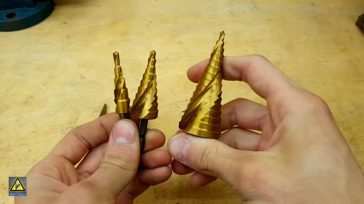 Когда все панели нарезаны, самое время заняться сверлением отверстий. Для пробы решили заказать комплект ступенчатых сверл.