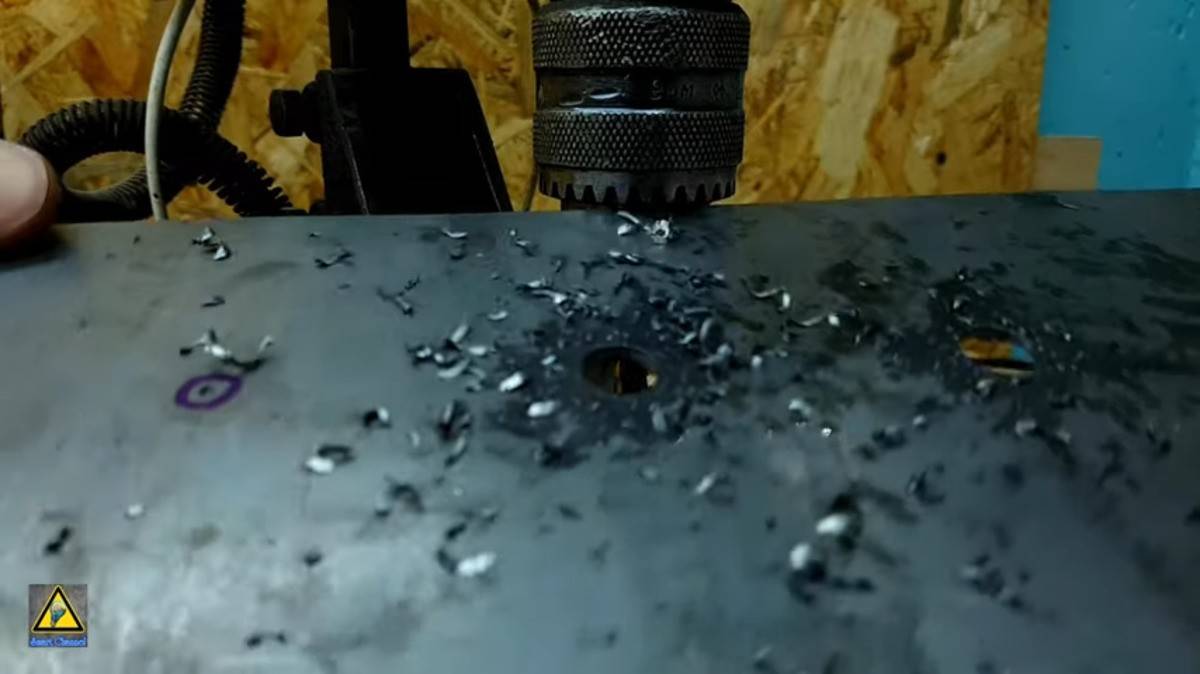 Первое впечатление от этих сверл пока положительные. Стружка, как положено, выходит из отверстия целыми ленточкам. С помощью зенковки убираю заусенцы.