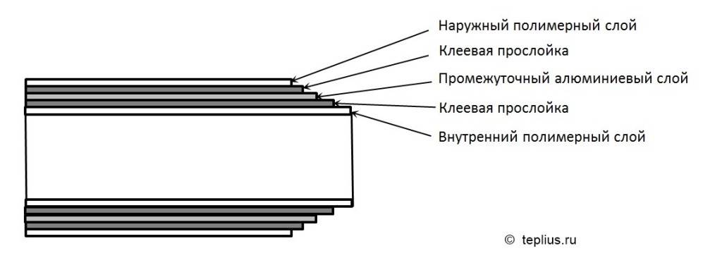 Схема конструкции металлопластиковой трубы
