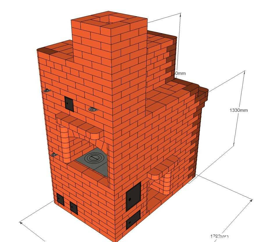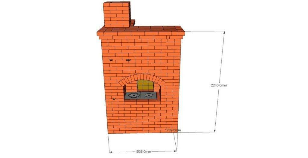 Средние или домашние печи, ее можно построить для обогрева небольшого дома на 30-40 квадратов. Размер подошвы коробки 2,13х1,47 м;