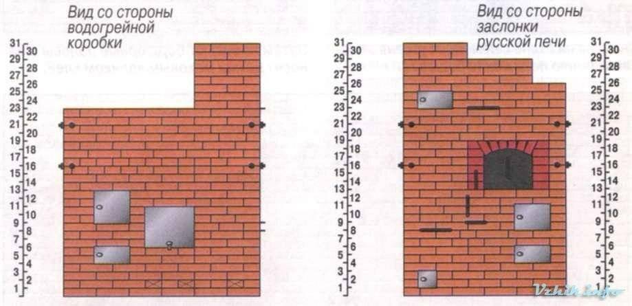 Потоки тепла, убегающие в фундамент и прилегающие слои грунта, блокируют и высушивают грунтовые массы, снижают риск деформации фундамента из-за сил пучения.К сведению! По отзывам владельцев, многие заказчики планируют построить кирпичную печь русской схемы, даже не предполагая использовать ее для обогрева жилых помещений. Еда, особенно овощные и мясные блюда, приготовленные в русской печи, не идут ни в какое сравнение с куховарением на газовой конфорке или электроплитке.