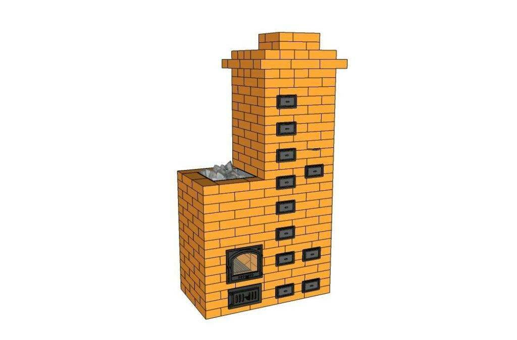 С помощью такой кирпичной печки легко обеспечить качественное и бесперебойное отопление. Она идеально подойдет для бани или, к примеру, для отопления дачи.