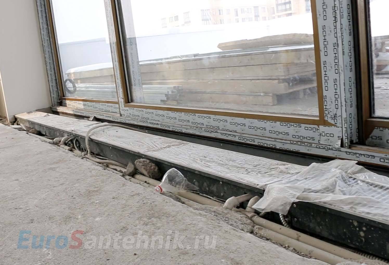 Такая процедура как изготовление ниши в полу требует высокого уровня мастерства и использования специальных инструментов, так как является достаточно трудоемкой. Монтаж конвектора водяного отопления предусматривает прокладку подводящей и обратной труб