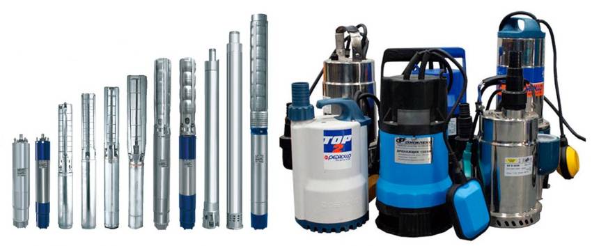 - погружные для колодцев (глубина погружения — 3−4 м);