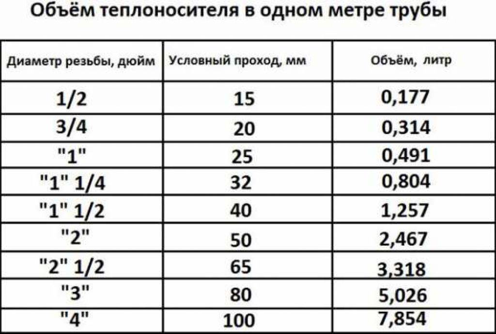 S (сечение трубы) x L (длина трубы) = V (объем теплоносителя)