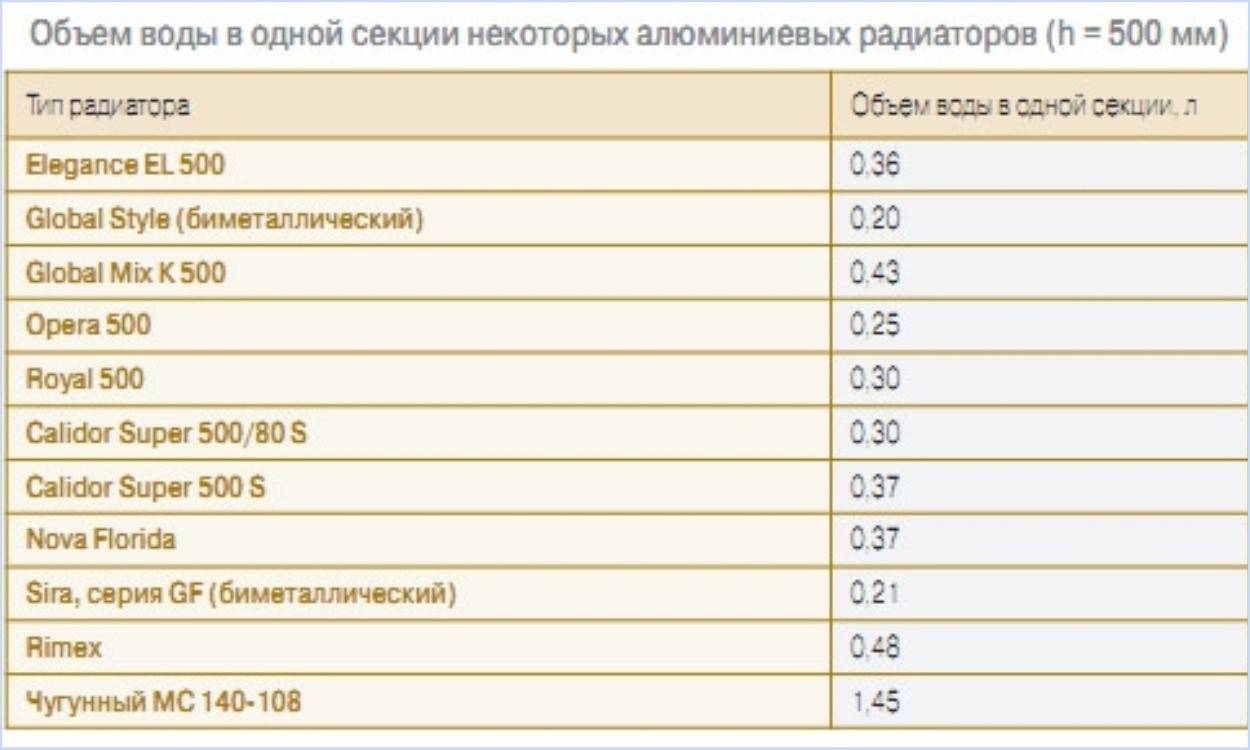Рис. 11 Таблица для расчета объема радиаторов отопления