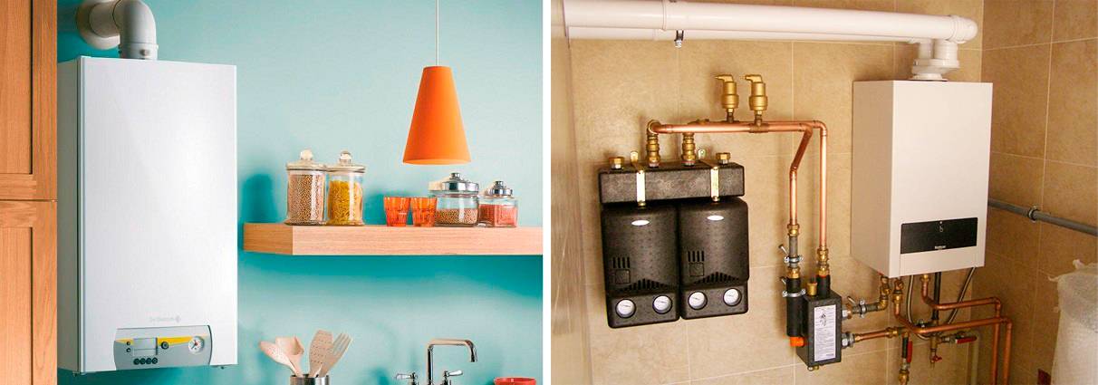 Подобные агрегаты обладают привлекательным внешним видом, что позволяет устанавливать их в кухнях или в коридорах. Допускается монтаж только на достаточно прочные стены — гипсокартонная перегородка несущей поверхностью быть не может. Отдельных помещений для них не требуется, но устанавливать газовое оборудование в жилых комнатах запрещено правилами. Если модель оснащена горелкой открытого типа, то установка допускается только в помещениях с закрывающейся дверь (например, в кухне).