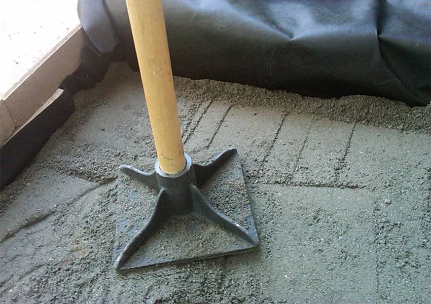 Песок засыпают слоем 5 см. Во время трамбовки он поливается водой