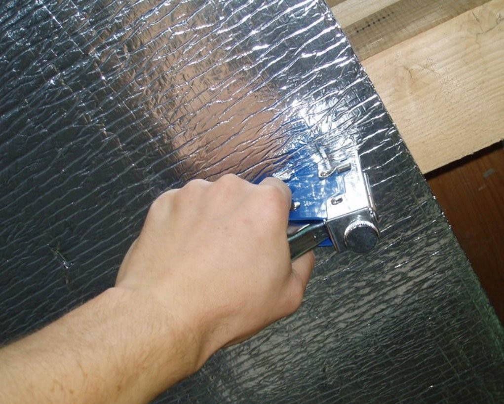 Непосредственно закреплять пароизоляционный материал на перекрытии следует при помощи строительного степлера. Так вы сможете добиться идеальной фиксации к потолку и предупредить отслаивание пленки или мембраны в ходе эксплуатации.