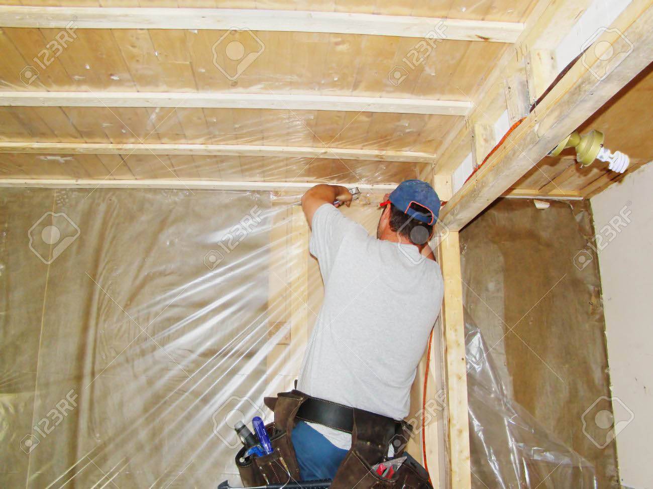 Приступая к работе по установке потолочной пароизоляции, следует подготовить необходимый инструмент. Для монтажа материалов рулонного типа, потребуются столярные инструменты: ножовка, молоток, ножницы, нож, степлер. На большом объекте этот список полезно дополнить электроинструментом: ручной циркулярной пилой, конструкция которой предусматривала бы возможность крепления к верстаку, шуруповёртом, пневмостеплером. Последний повлечёт за собой необходимость наличия компрессора.