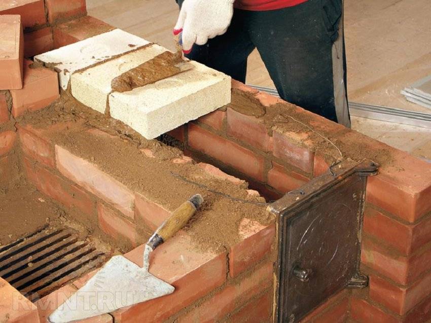 Укладку топки нужно выполнять из шамотного кирпича на аналогичном растворе