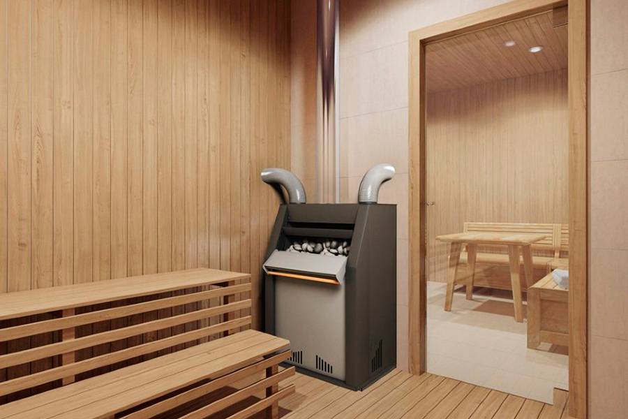 Отопительное устройство «три в одном» годится как для бани, так и для сауны, образуя при этом приятный для тела пар. Такое название получило из-за того, что одновременно может обогревать парную, моечную и предбанник.