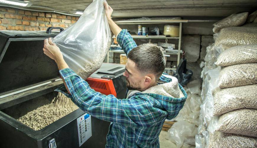 - Загрузка пеллет требует трудозатрат. Догружают бункер вручную; вполне можно себе представить, сколько килограммов топлива придется перенести на себе, если емкость бункера исчисляется сотнями литров.