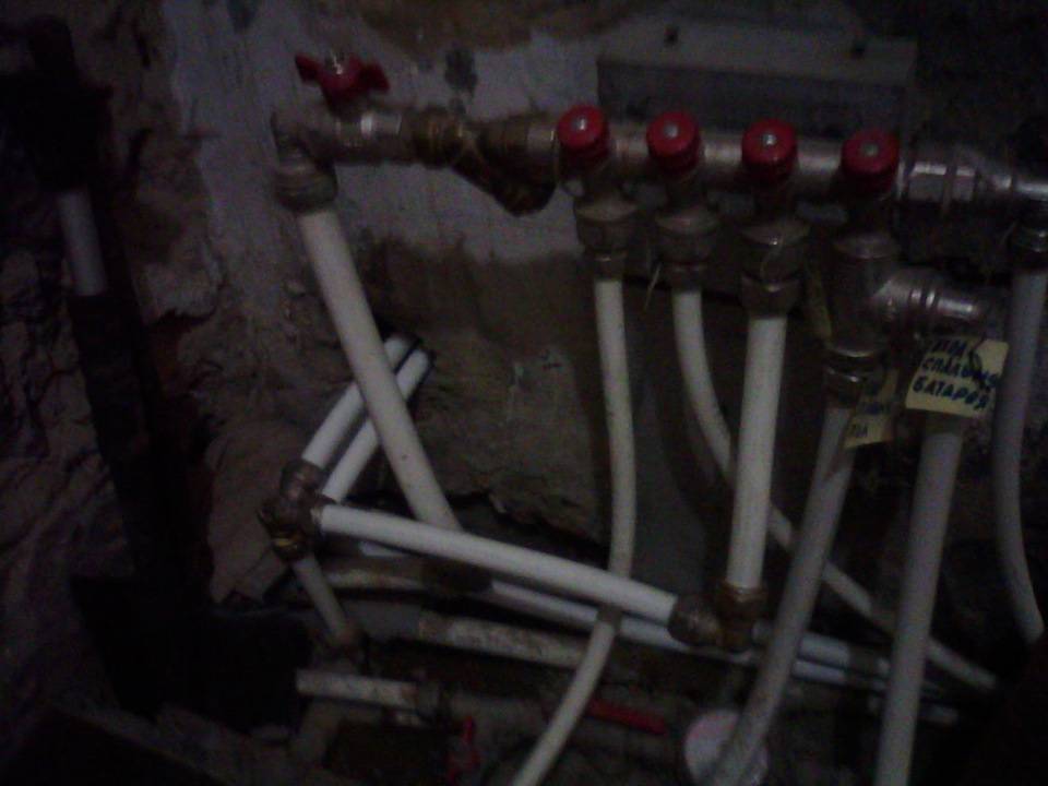 Были заменены трубы во нашей четверти дома на металлопластик 20″, уложен в ванной и прихожей теплый пол 16″ разводка труб на теплый пол и радиаторы через коллектор.
