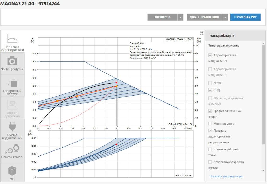 На фото: характеристическая кривая насоса MAGNA3 25-40