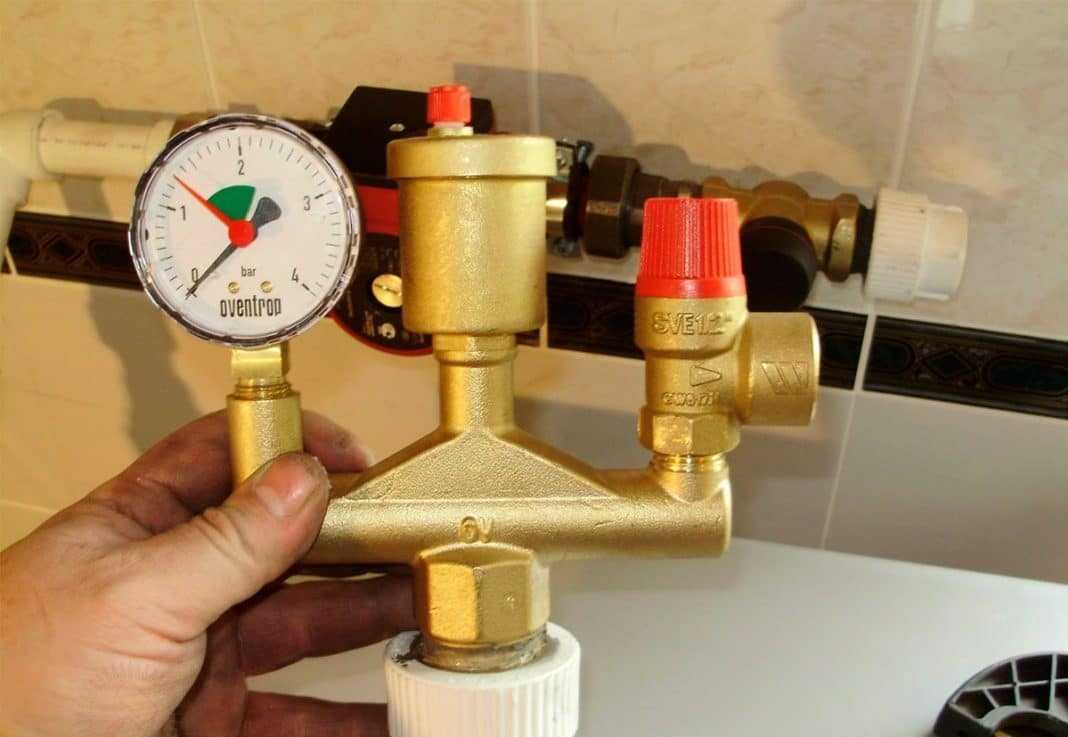- В местах с наибольшей вероятностью появления избыточного давления – после котлов, циркуляционных насосов, на коллекторах;