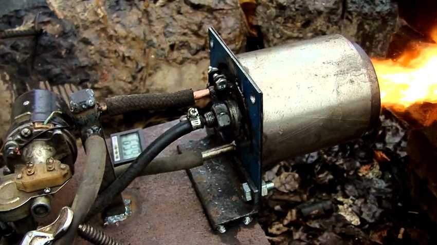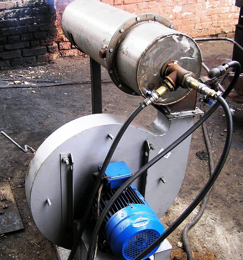 На заметку! Рекомендуется использовать компрессор от холодильника. Небольшого давления (2-4 бар) будет вполне достаточно для эффективной работы сопла. Воспламенение легко обеспечить свечами зажигания от автомобиля, стоящими у сопла.