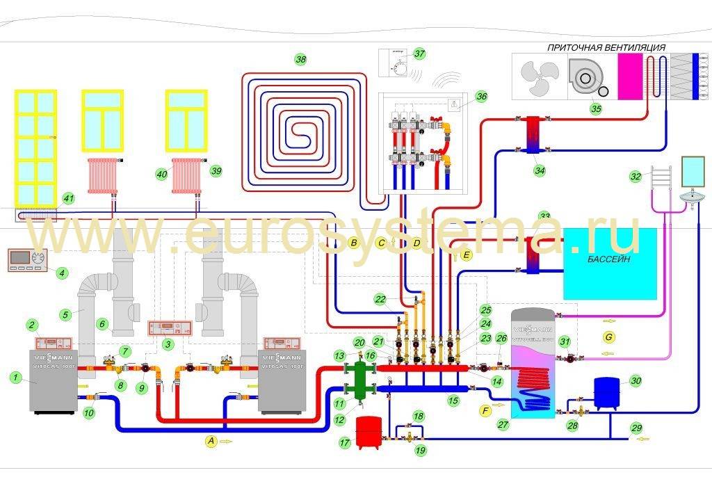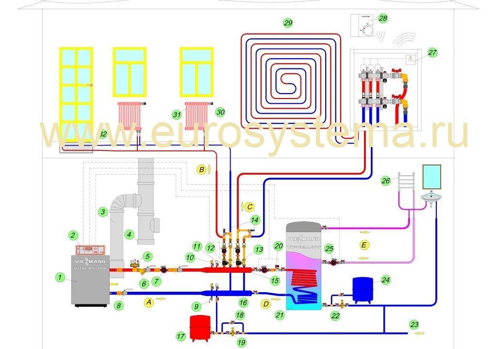 Такая схема отопления двухэтажного дома обеспечивает следующие преимущества: