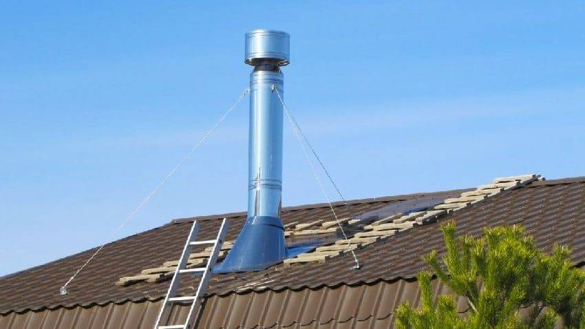 Обязательно необходимо убедиться в том, что проход через кровлю пожаробезопасен. А пространство внутри дома должно быть защищено от влияния влажности и ветра.