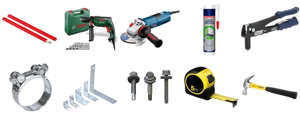 Гидроизоляция дымохода на крыше из металлочерепицы требует подготовки следующих инструментов и материалов: