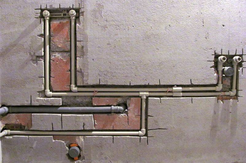 - Нежелательно проводить трубы через стены, межкомнатные перегородки и другие строительные конструкции. Но если без этого не обойтись, труба в стене должна быть заключена в специальный металлический или пластиковый стакан.
