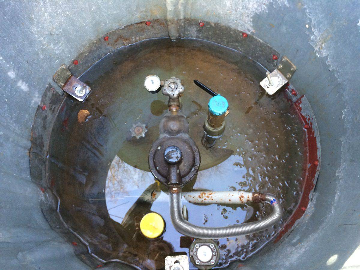 Хотя основной причиной отсутствия подачи газа с газгольдера является замерзание редуктора, иногда может замерзать и сама емкость. Так, вода на участке может быть в таком количестве, что способна затопить газгольдер и заморозить его с приходом морозов. И складывается ситуация, когда газ в емкости еще есть, но наружу он не выходит.