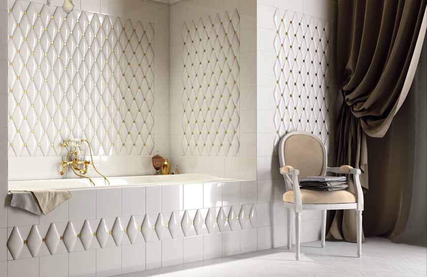 Кроме того, кафельная рельефная плитка по характеру предназначения делится на настенную, напольную, фасадную, уличную напольную.