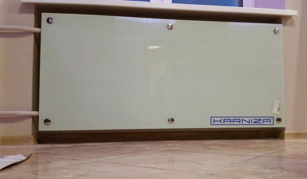 Этот материал тоже подходит для радиатора, но его редко используют, поскольку он подходит только для эстетики. На стекло наносят любое изображение, но оно легки ломается и быстро пачкается, поэтому нуждается в особом уходе.