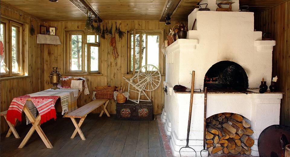 Традиционно русская крестьянская изба топилась по-черному. При такой топке дым из печи курился прямо в помещение русской избы, и только потом через отверстия в крыше