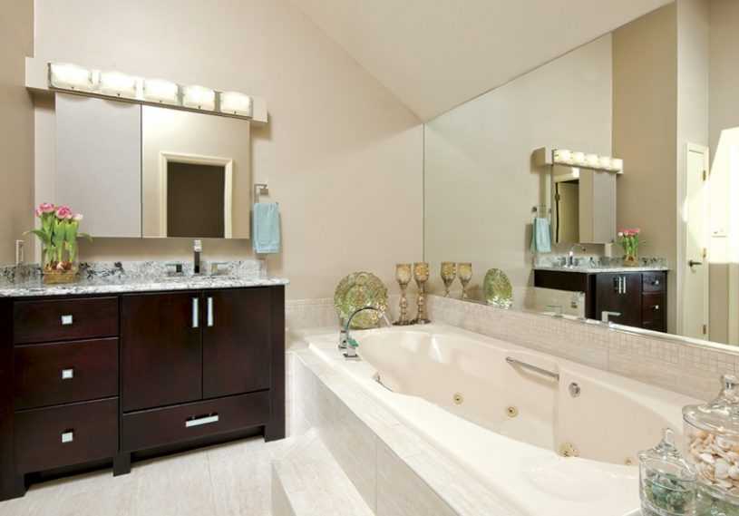 Если ванная обладает большим пространством, то можно создать в ней роскошный интерьер. Большую ванную можно разбить на функциональные зоны.