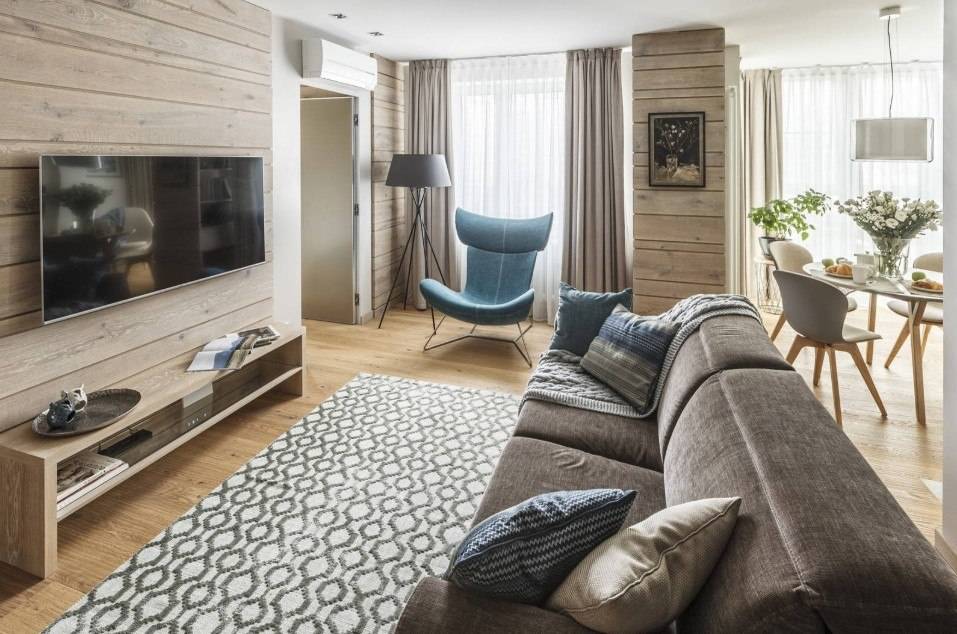 - Умеренный шик. Приветствуются лёгкие намёки на положение владельца жилья, подчёркивается статусность и солидность обстановки.