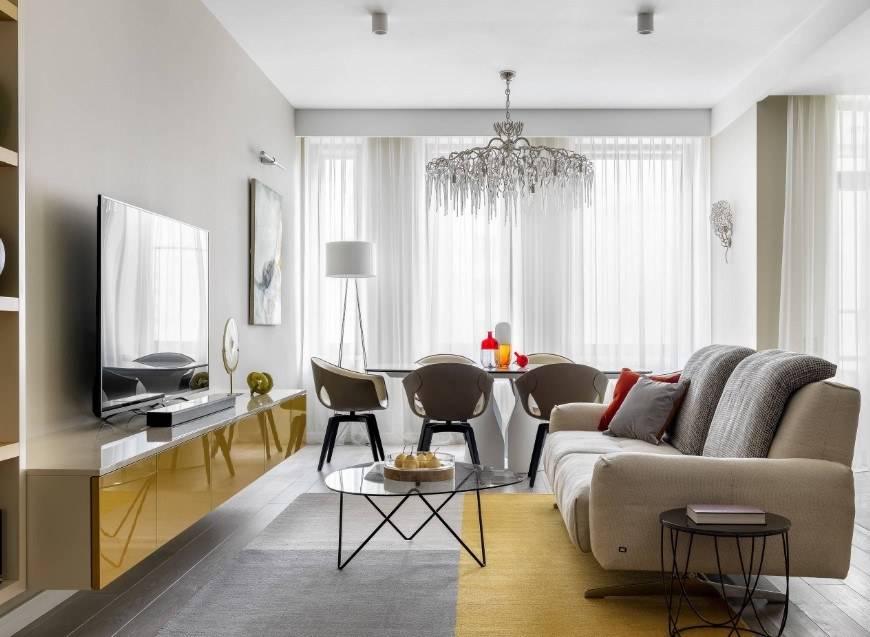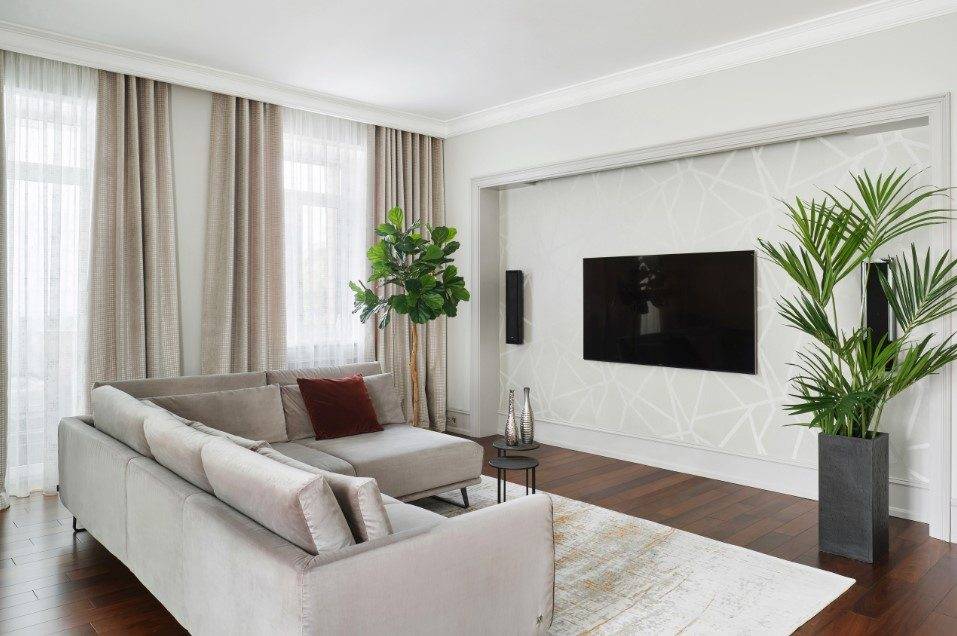 Для оформления дизайна гостиной в 2020 году подойдут цвета: