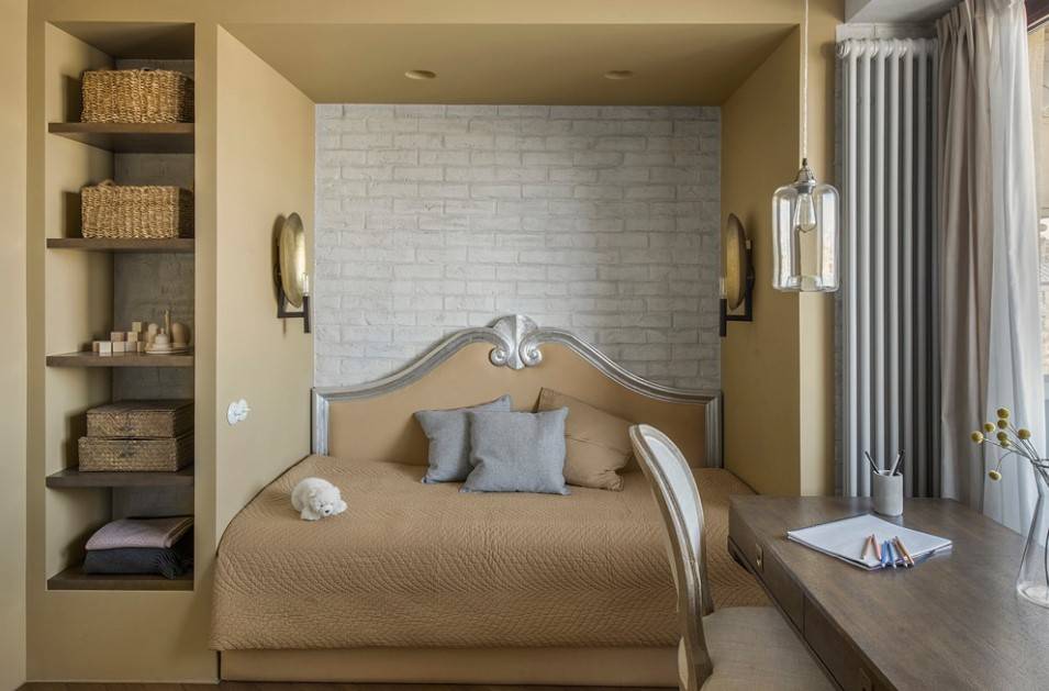 Интересным решением является сочетание пыльно-розового с оттенками земли. Несмотря на контрастность палитры, это комбинация будет совершенной базой для дальнейшего декора пространства.