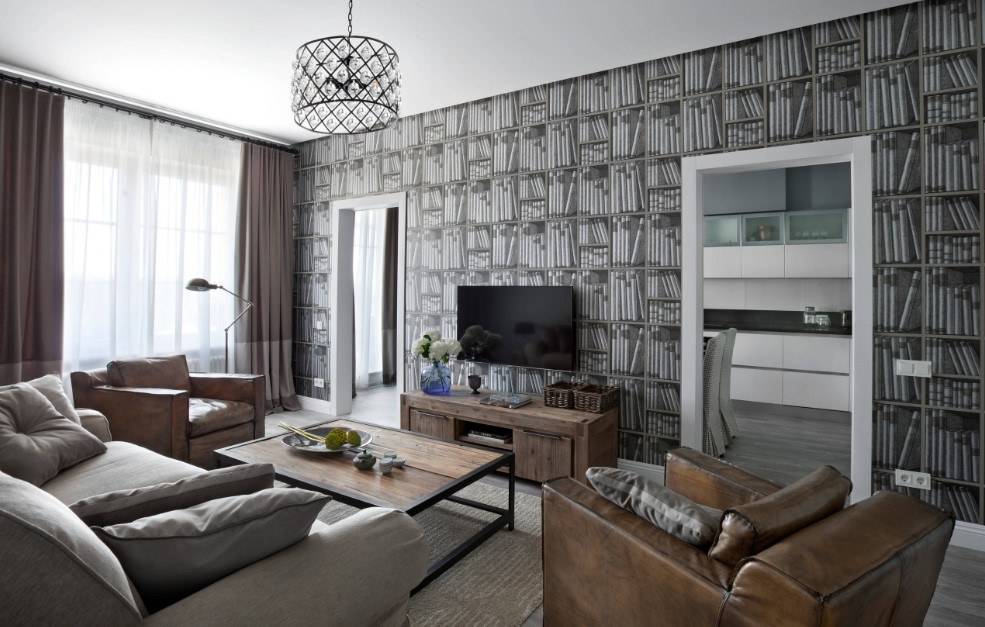 В минималистичной гостиной базовым остаётся снежно-белый цвет, в лофте — серовато-белый или оттенки молочного.