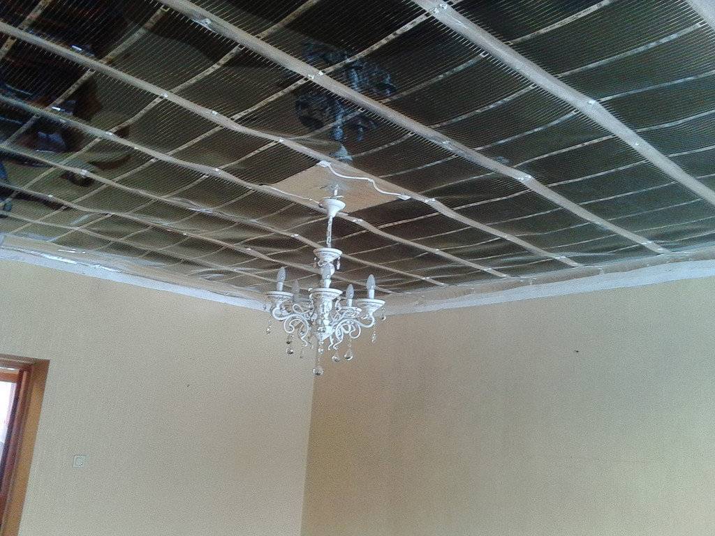 Также можно закрыть конструкцию подвесным потолком: гипсокартонными листами, вагонкой или пластиковыми панелями. Между натяжным или подвесным потолком и системой инфракрасного отопления нужно оставлять небольшой зазор. Для отделки потолка следует выбирать водонепроницаемые материалы толщиной не более 16 мм.